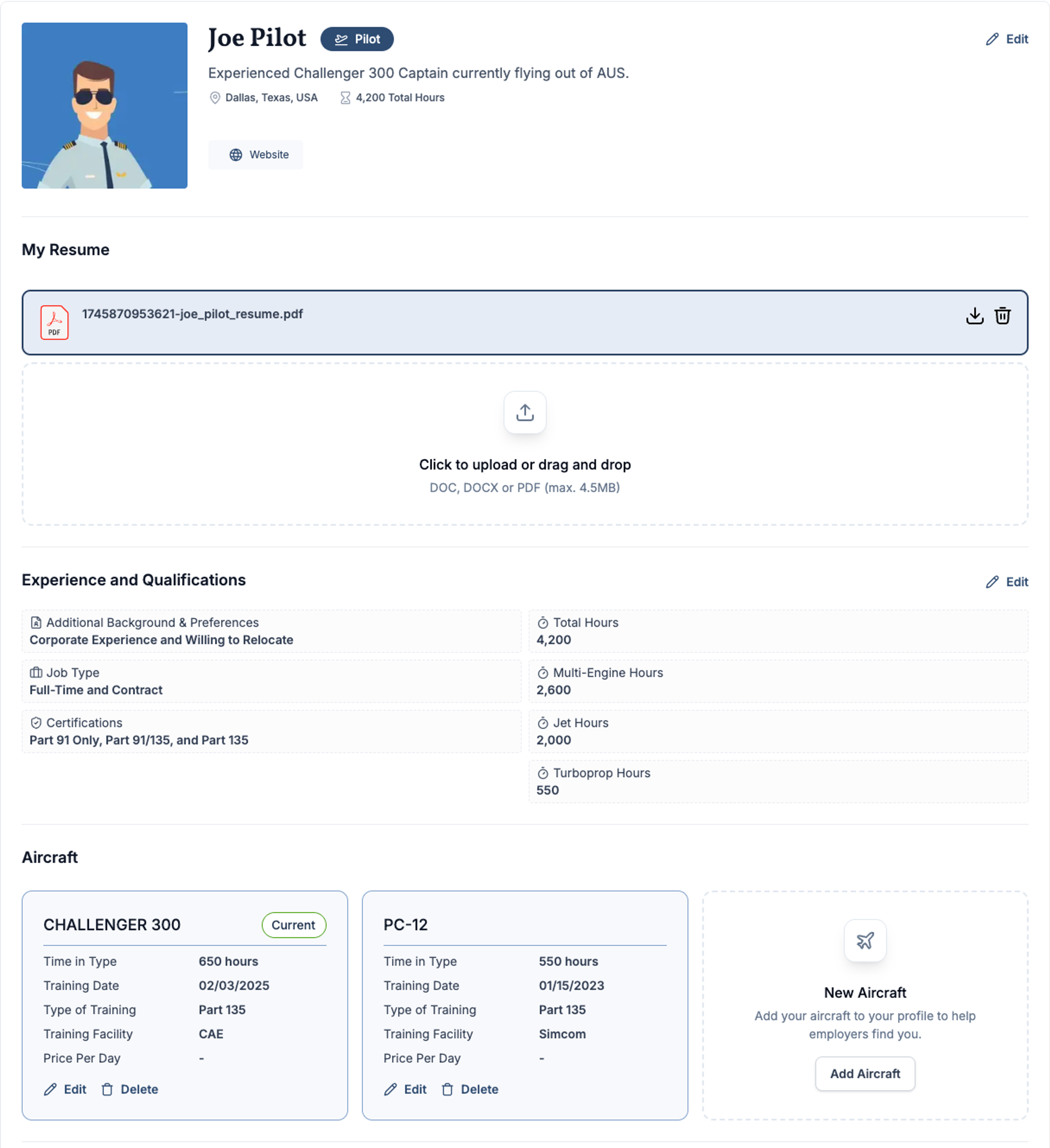 ✅ Simplified Profile Updates: Keeping your profile up to date is critical — and now it’s easier than ever. We’ve organized your profile into clear, editable sections so you can quickly update your type ratings, certifications, training dates, and other key information with just a few clicks. No more scrolling or searching for the right fields — just update and save!