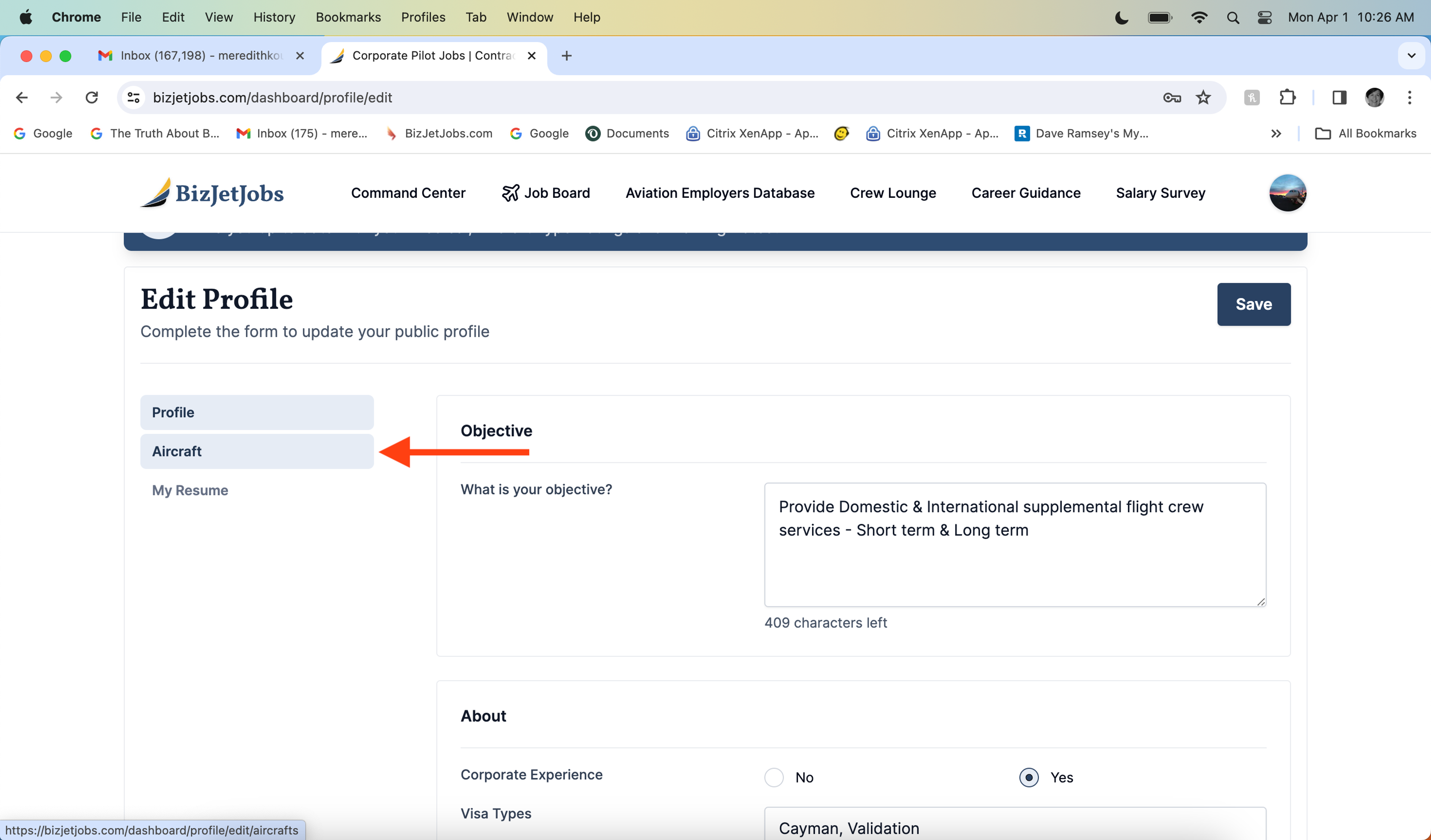 Updating your Bizjetjobs profile is quick and effortless, taking only a few minutes of your time. Here's how: