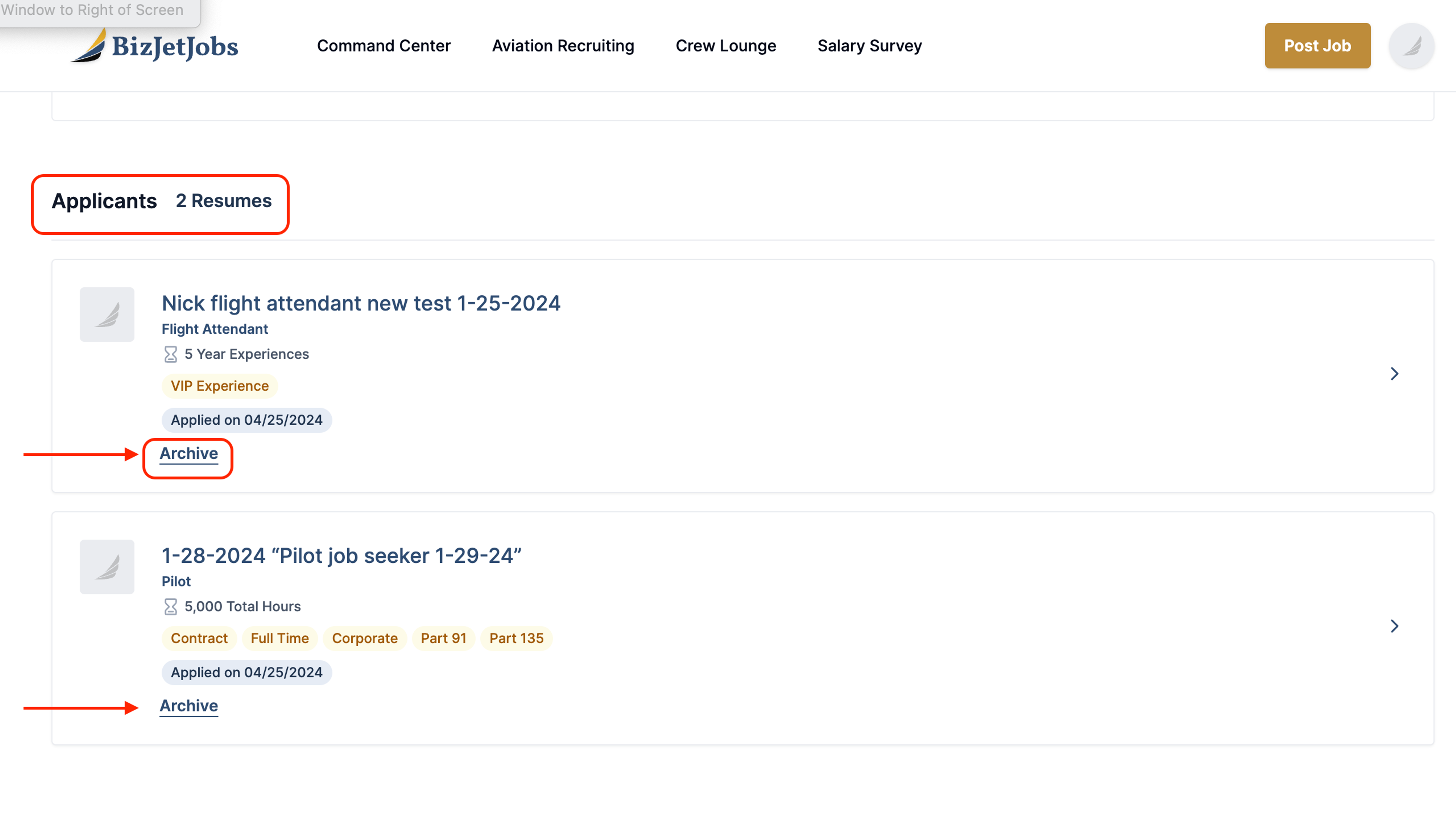 Employers now have the ability within the job postings in your command center to manage your applicants with the new Archive Feature. This feature gives employers an easy way to organize and manage applicants.