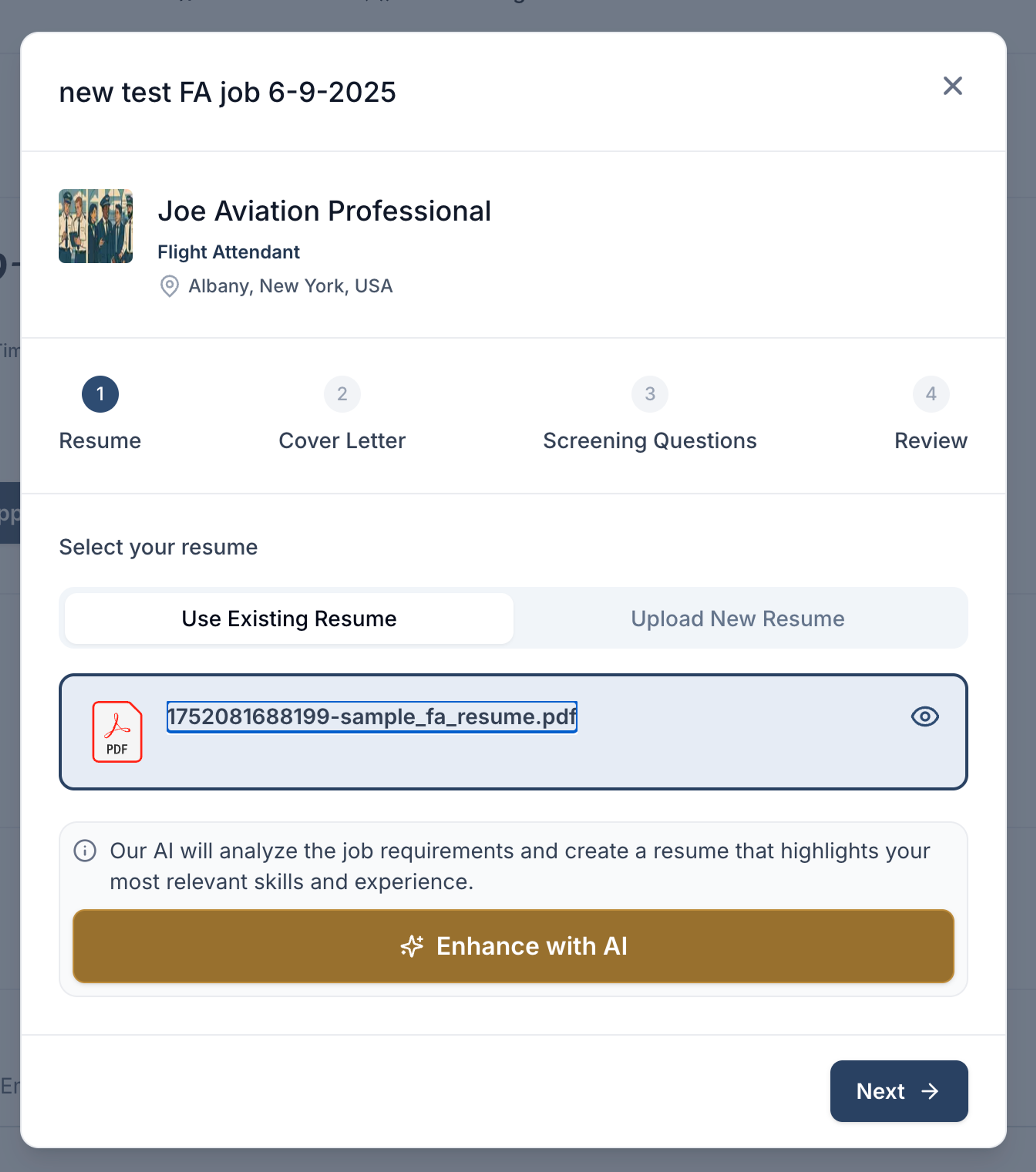 Every job is different. That’s why we created a tool that lets you quickly tailor your resume to match each specific job posting on our site. Just click the option (“enhance resume with AI”) and we’ll suggest customized improvements to highlight your most relevant qualifications.