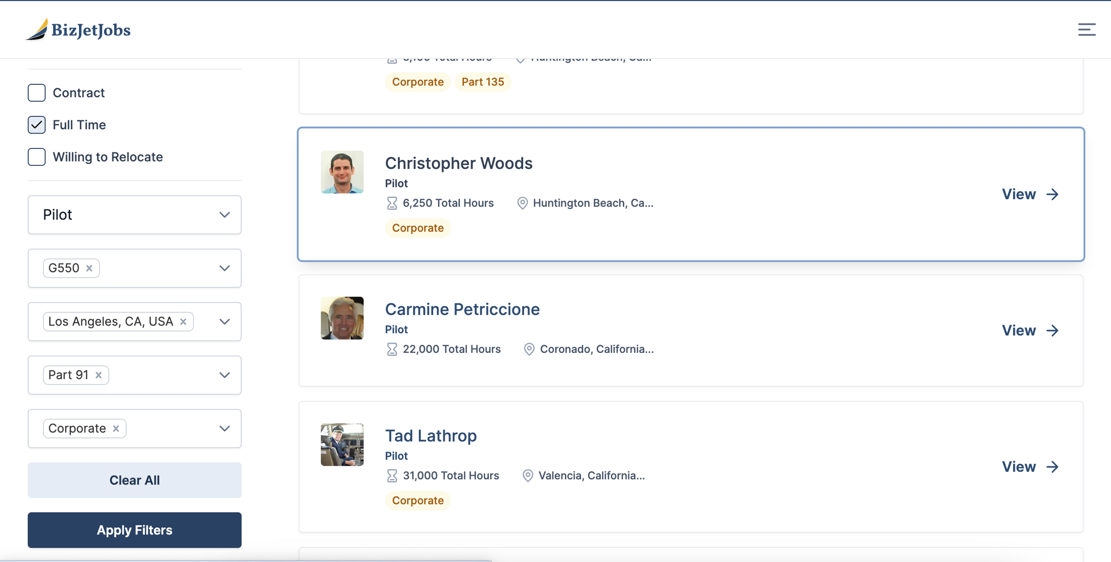 - Our team consists of industry experts who understand the ins and outs of the aviation job market. Bizjetjobs.com was founded 20 years ago by Rick Koubsky, an experienced Corporate Pilot, Contract Pilot and Director of Aviation. Whether you're a seasoned professional or just starting your career, we're here to provide guidance tailored to your unique needs.
