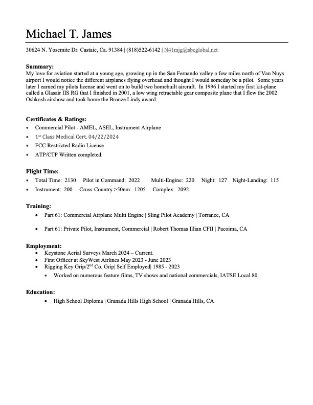 Flight Experience & Aircraft